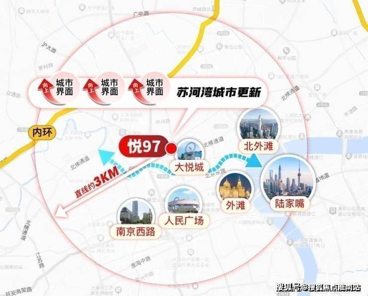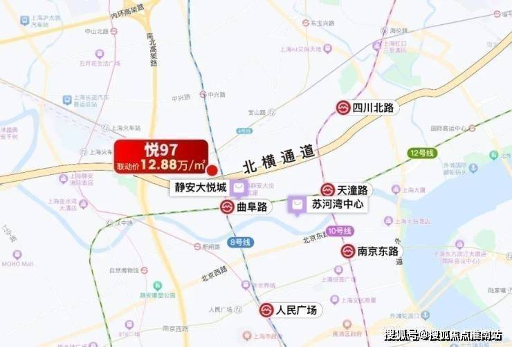 而距离人民广场1站地铁,直线约1.2公里的悦97,联动价仅约12.88万/㎡