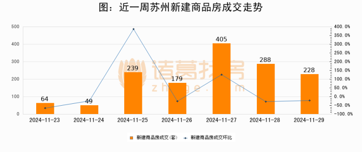 【苏州成交日报】11月29日新房成交228套、二手房247套;涨价房源28套