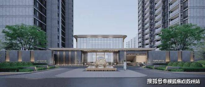 一面即为主入口景观面,作为花语天著归家第一站,主入口以高级灰和香槟金为底色,既体现主入口恢弘气势,又营造典雅的归家氛围。入口以两侧迎客松树阵、涌泉水景、景观雕塑,彰显尊崇序列感和归家仪式感。