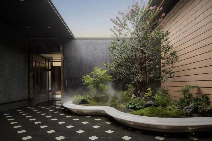 示范区师法留园“缩景乾坤”之精妙,在小尺度空间中营造三进庭院,打造约1500㎡原著世家典藏馆。一进“芳薇院”,精选300年老桩紫薇置于整块顶级汉白玉打造的盆器内,是苏派盆景的“缩景”艺术集大成体现。穿过“玲珑幻廊”,二进庭院“玲珑万象”视线豁然开朗,四水归堂下的日照金山昆仑雕塑、以及月榭观澜内的雨打芭蕉和月洞门,带来桃花源记般的视觉惊喜。三进下沉庭院,取意“高山流水”,8米高的龙门叠瀑顺势而下,汉白玉精雕石拱桥复刻网师园引静桥,水下群鲤欢腾,蕴含着“鲤跃龙门”的美好祝福。游园入院间,喧嚣渐远,浮躁尽褪,完成从见自然、到见天地、再到见内心的情绪升华及情感共鸣。
