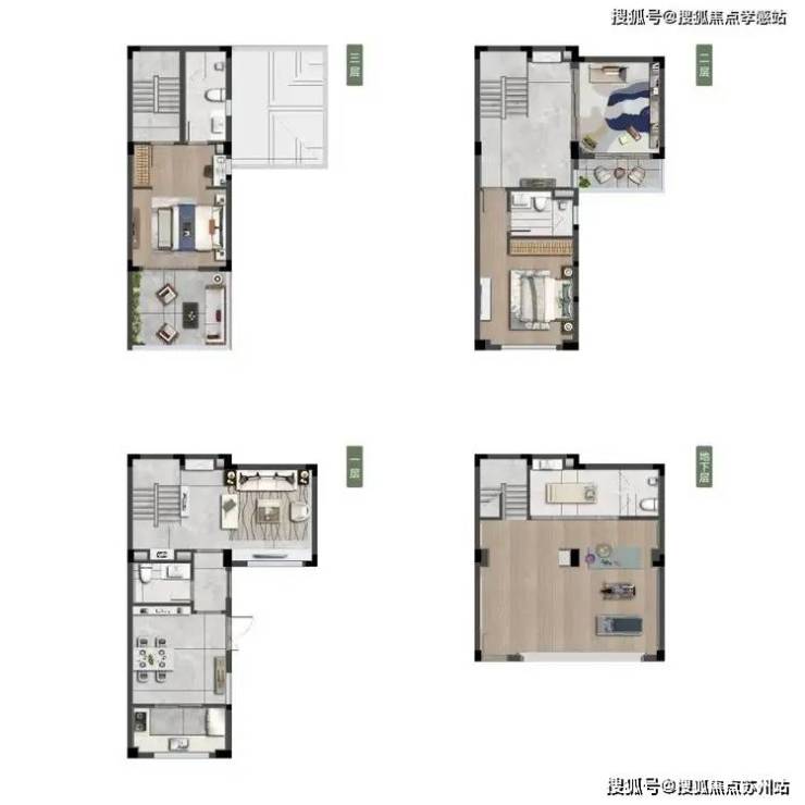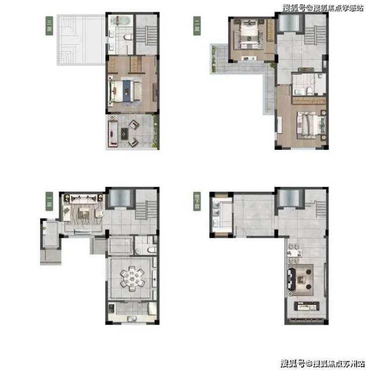 常见的联排都是短面宽、长进深,像餐厅部位的采光普遍存在问题。但经过L型优化之后,可多角度采光,像一楼的卧室、餐厅、厨房都能有采光面,阳光满溢。