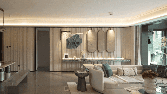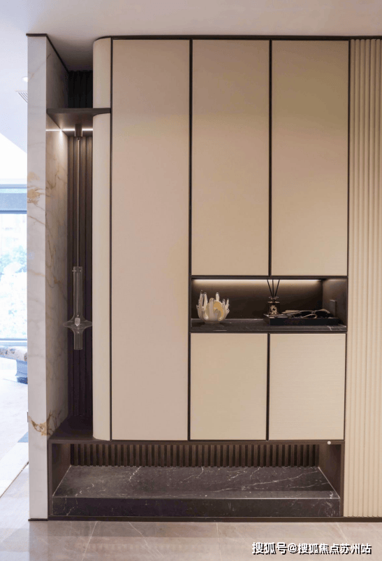墙面细腻的曲面延展,源自园林的柔润巧思,消弭直角锋芒,让空间拥有老苏州的呼吸感,圆融、包容、内敛,归家刹那,心神与步履同获安放。