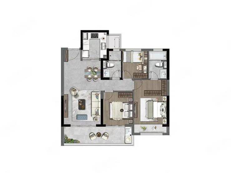 约105㎡三房:做了三开间朝南,阳光充足。有的户型是边厅,视野更开阔;有的户型南北通透,通风更好。都配备了独立的卫生间和步入式衣帽间,主卧的私密性和舒适度很高。餐客厅和厨房连在一起,空间显大,家人互动也更方便。双开间的阳台,更是拓展了休闲空间。