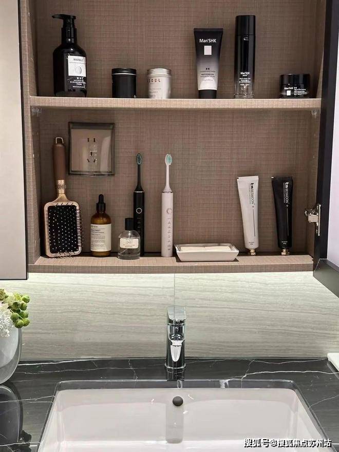 卫生间镜柜内部插座面板,让电动牙刷、冲牙器、电动剃须刀众多设备内置,保证美观度等等。
