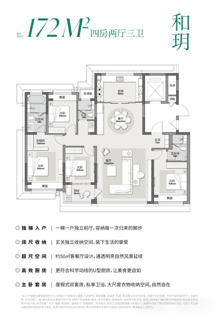 项目容积率1.7,规划11栋13-17F的小高层,约40-65米超宽楼间距布局,保障日照充沛与视野无遮挡。建筑面积约165-225㎡的园意平邸,以超越常规的空间格局,重新定义“奢适”新境界。在追求均好性与南向开间的极致尺度中,不仅打造理想居所,更前瞻性地规划了两代同堂的理想生活模式:家人之间既保有恰到好处的独立空间,又能实现朝夕可及的温情共处。