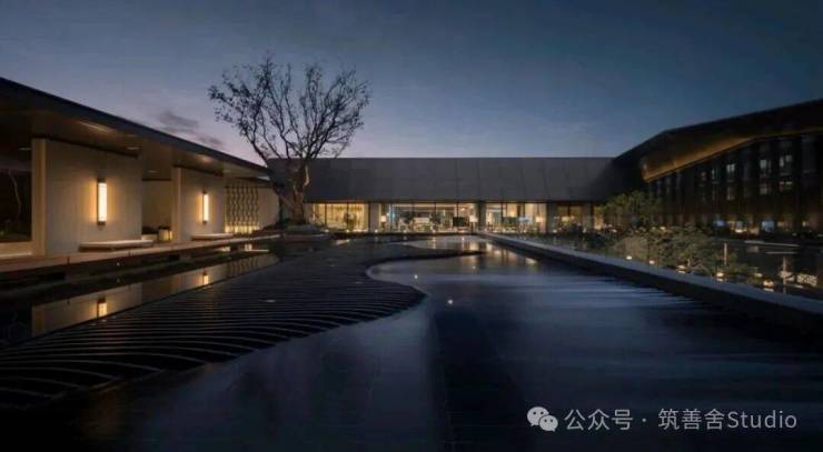 镜面水景倒映乌桕的树影,古铜色金属屏风如同漏窗演绎自然的光影艺术,酒店的静谧感碰撞逛苏园般的仪式感,宛如置身宋画之中。