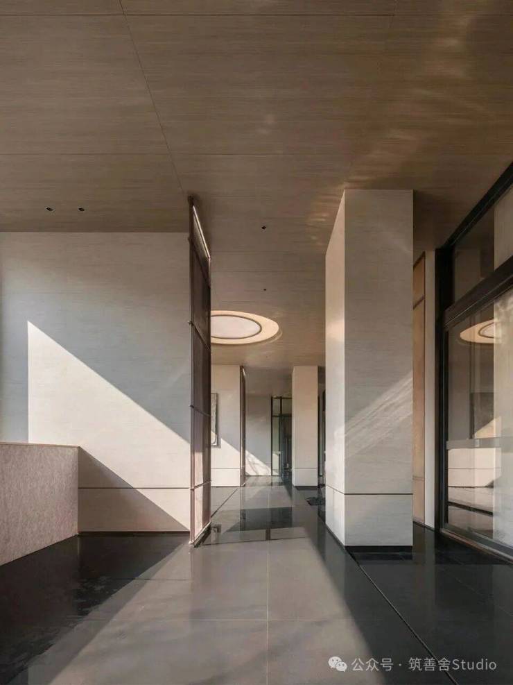 外立面融合铝板与石材,搭配600mm宽挑檐及大窗墙比设计,兼具耐久性与美学。以“少即是多”的静奢风格,辅以三玻两腔玻璃,实现颜值与静谧的完美平衡。