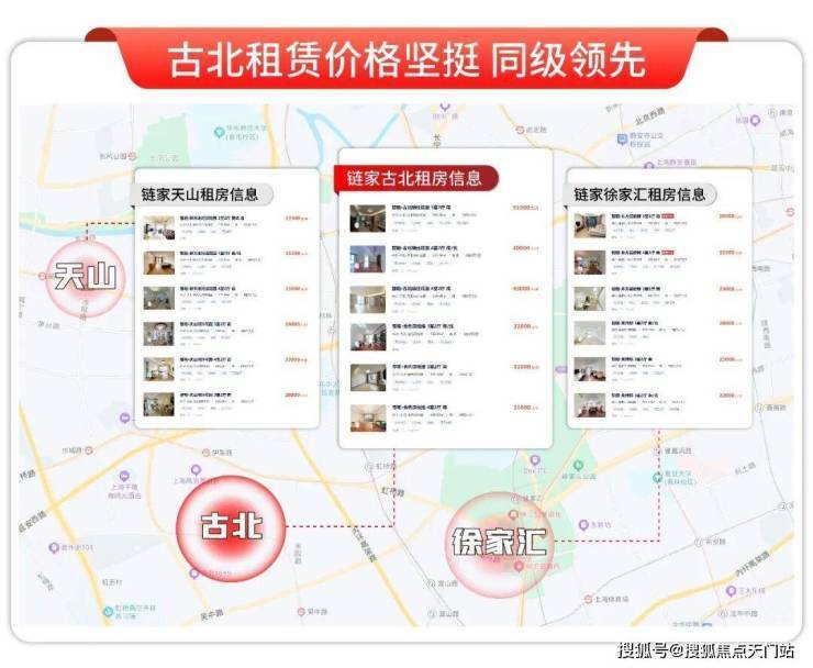 此外,古北高租售比提升性价比,如古北瑞仕花园165㎡月租超3万,高于天山、徐家汇。