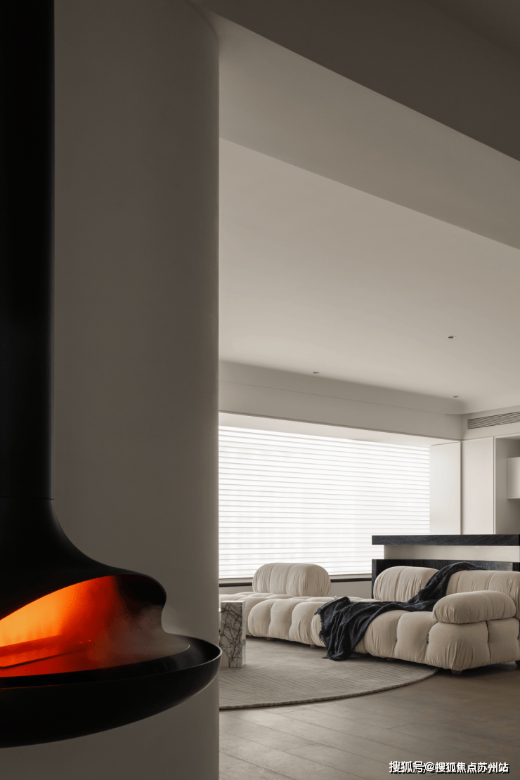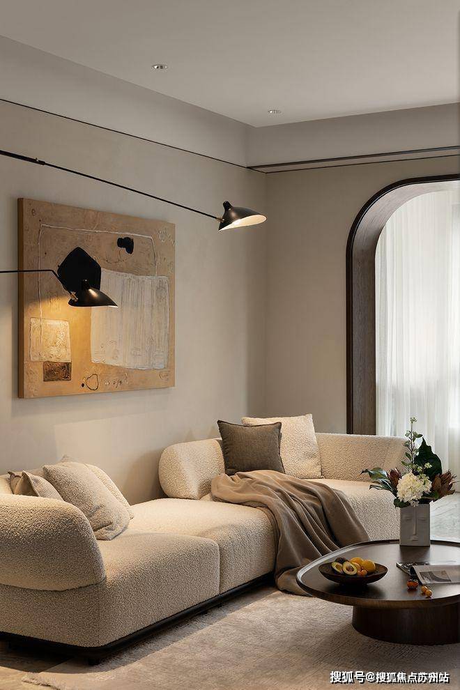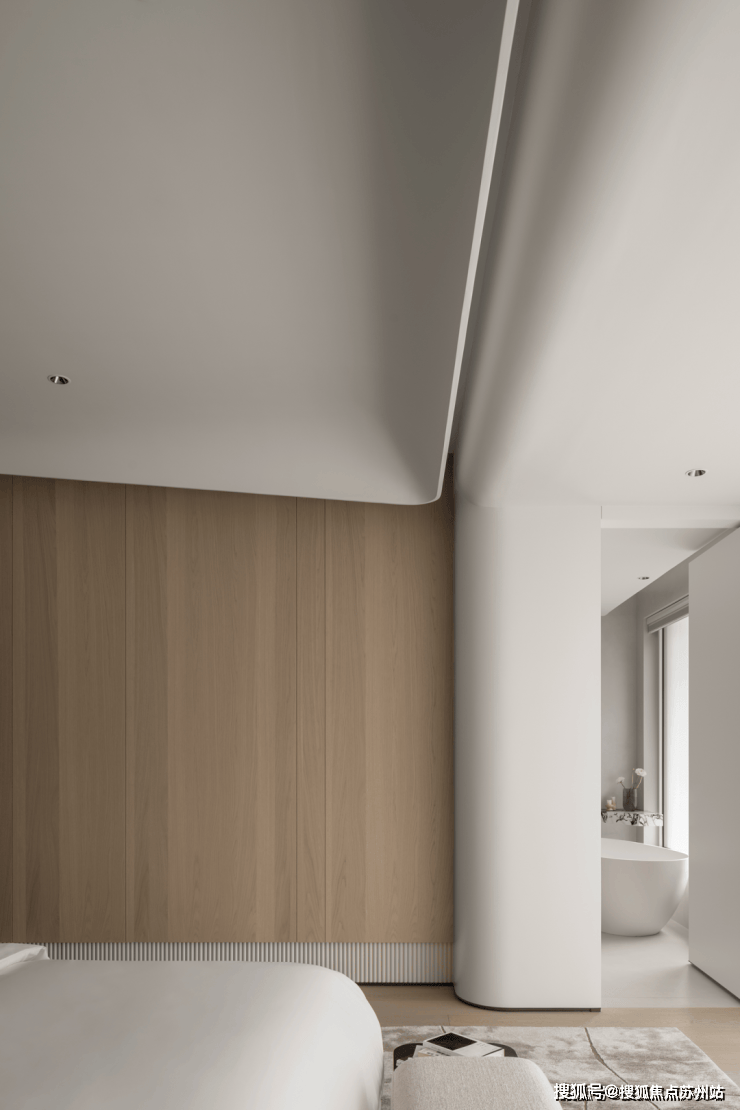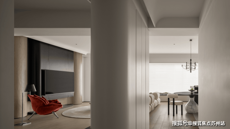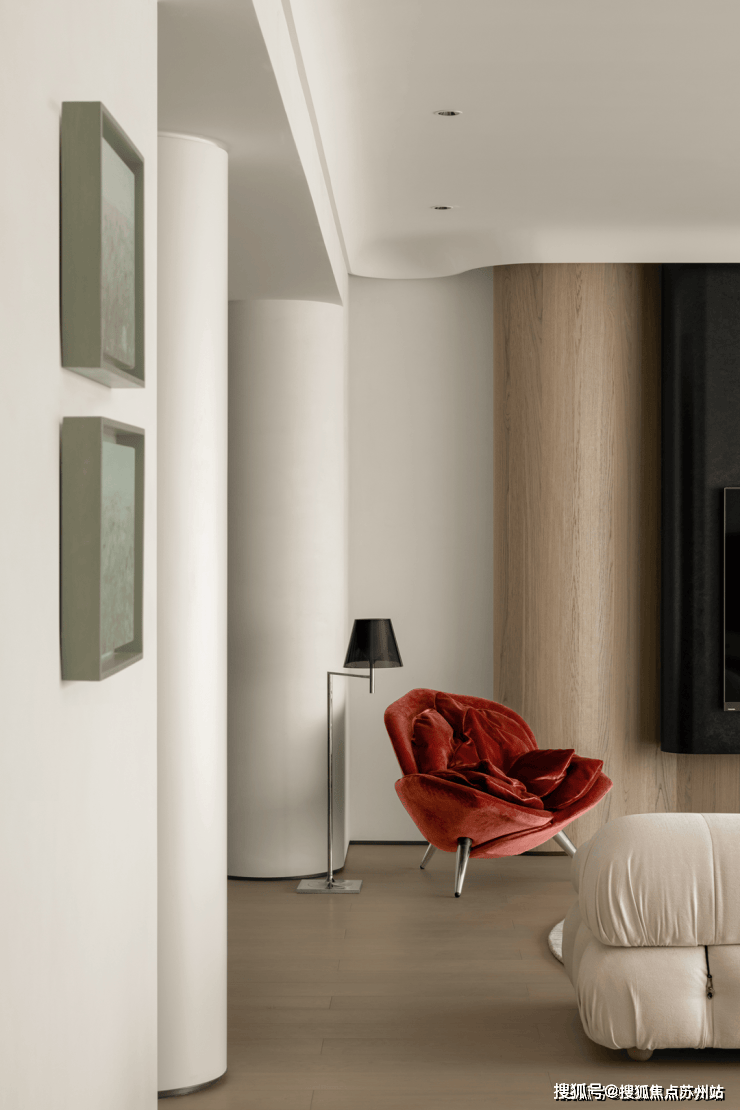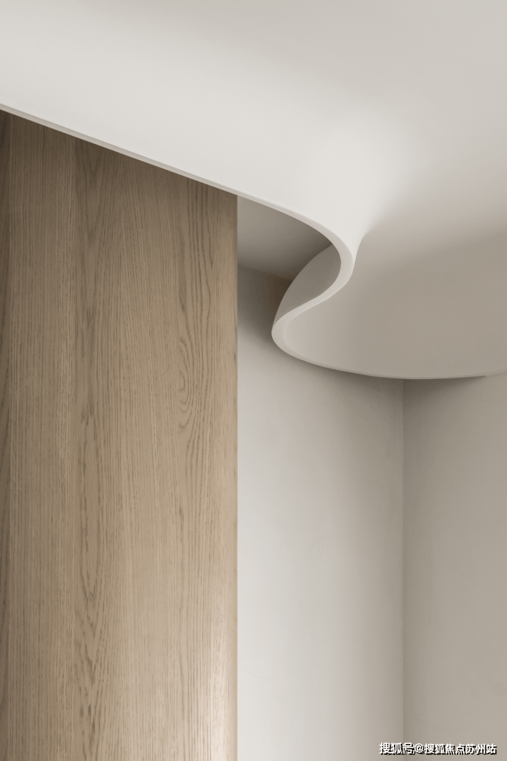 凭借温柔的弧形,优化了原始梁柱的琐碎感和锐利感,与木元素或纯色调糅合,让光影自由地流动。