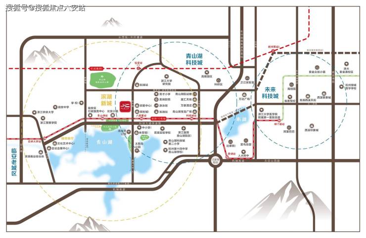 项目占据临安“滨湖新城+科技城”双核交汇的稀缺区位:
