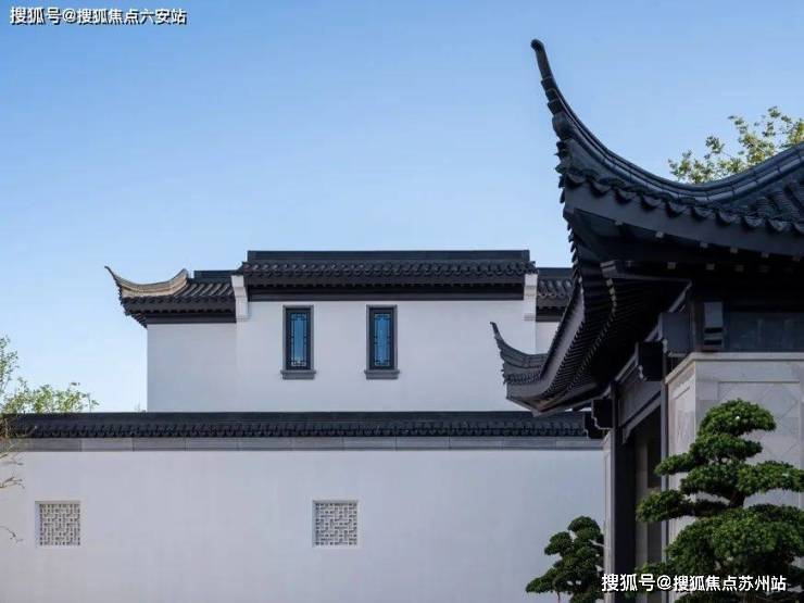 立面设计:白墙黛瓦+飞檐翘角,悬山顶屋顶按古法营造,檐角精确计算排水角度。