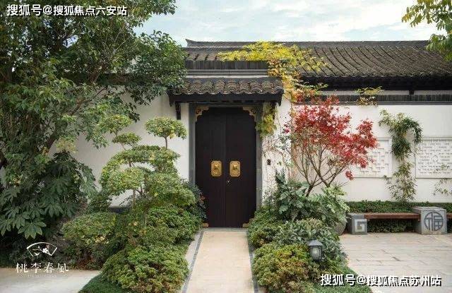 三进十景:中央水景轴串联月洞门、雕花漏窗,移植百年樟树、红枫。