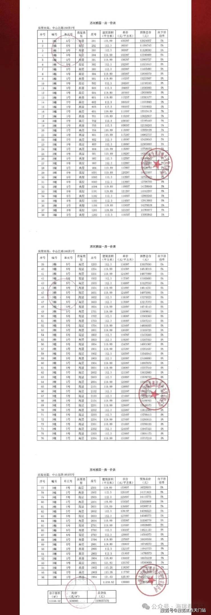 一房一价表