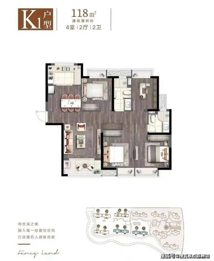 9-10-13-14号楼边套,118㎡4房2厅2卫,总高18层(两梯三户),共144套:
