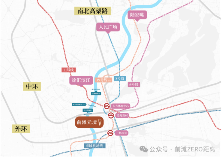 6、8、11和机场联络线四线交汇叠加在建19号线,中环高架+外环高架+上中路隧道直达徐汇滨江,立体交通网畅联全城。