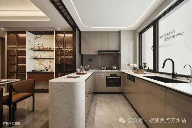 流线岛台——参考园林月亮门设计室内动线中的流线笔触,柔和生活质感