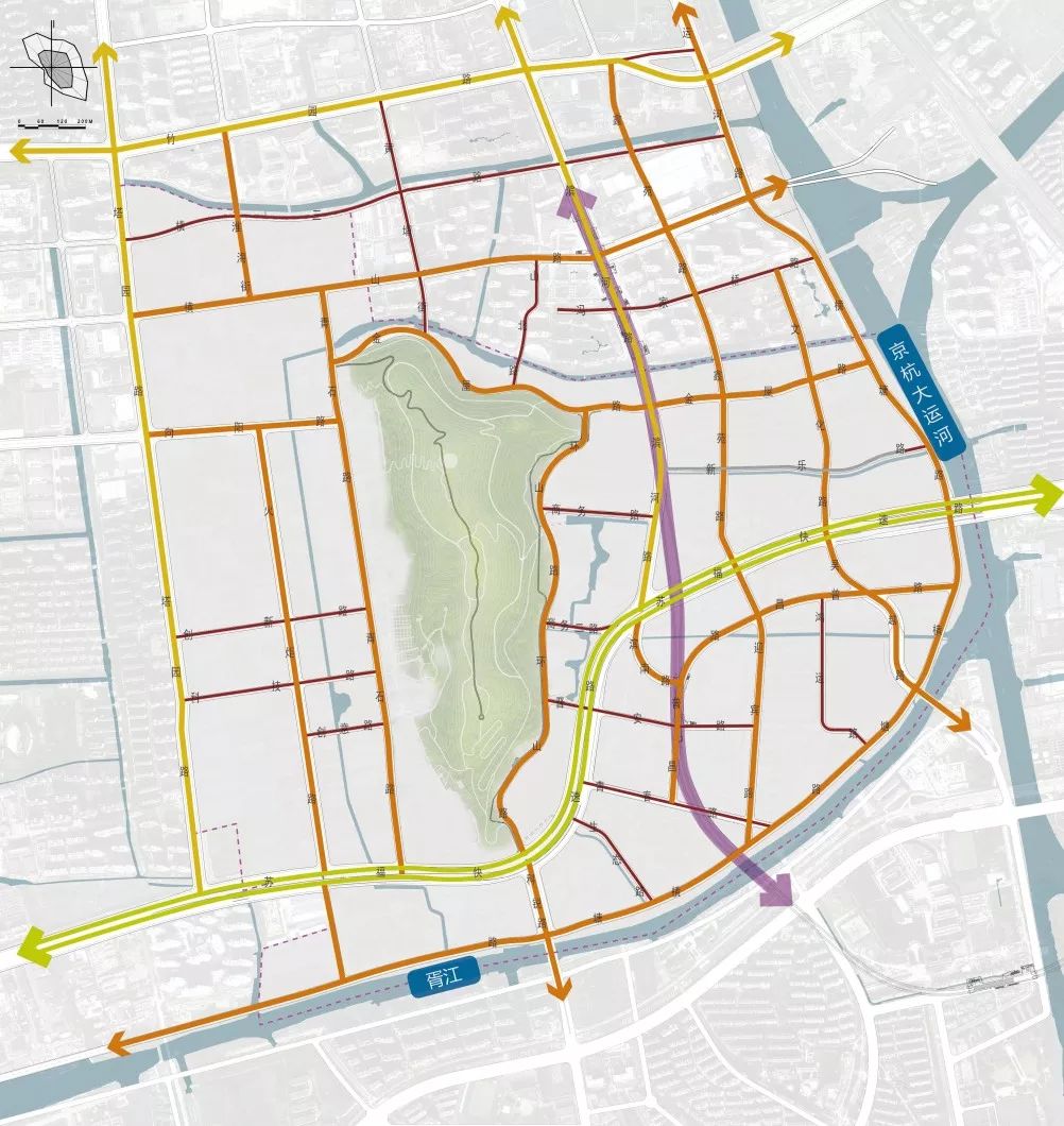 快速路:苏福快速路从基地中部东西向穿过,向东跨过京杭大运河。