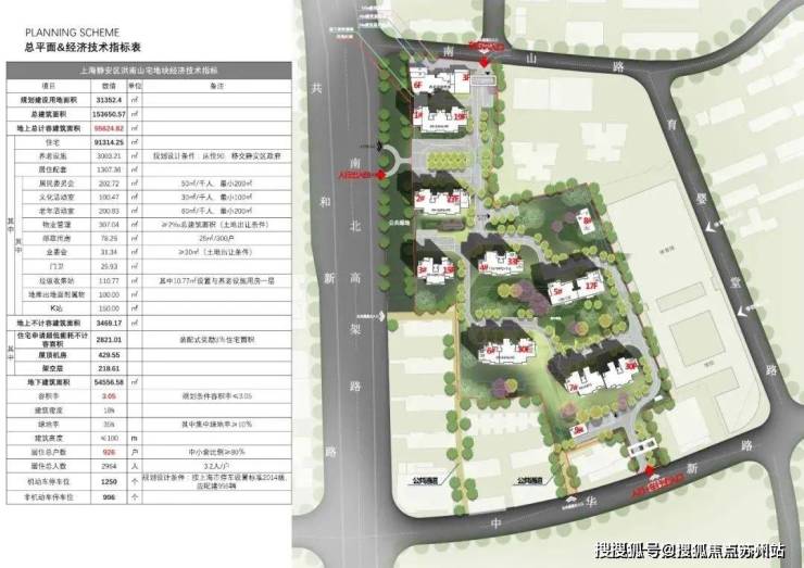 而北侧靠近南山路一侧还规划一幢最高6层的养老设施用房。在小区南北两侧的中华新路和南山路分别设有机动车出入口。
