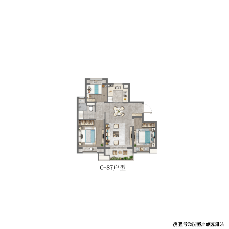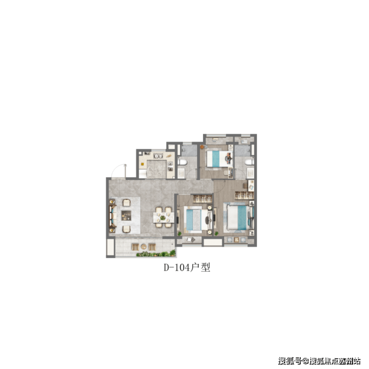 约104㎡的3房2卫,结合了以上两个户型的所有优势,如果预算合适,这个户型真的是没有对手的存在。
