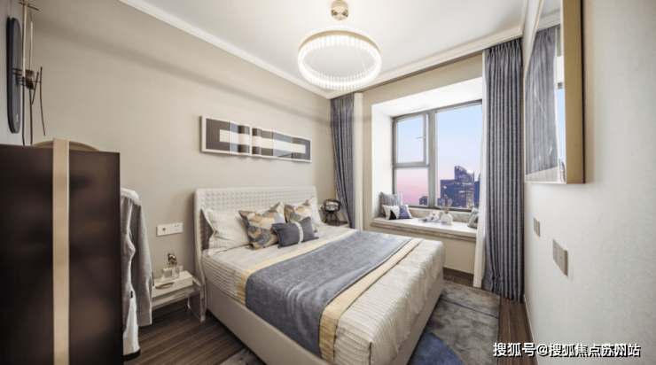 但三开间朝南的设计,所有卧室均带飘窗,同时还是个含金量非常高的南北通透户型。