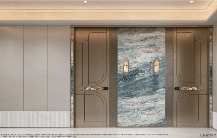 入户空间,配置精装铸铝门,定制5合1门锁,点缀以奢石把手。