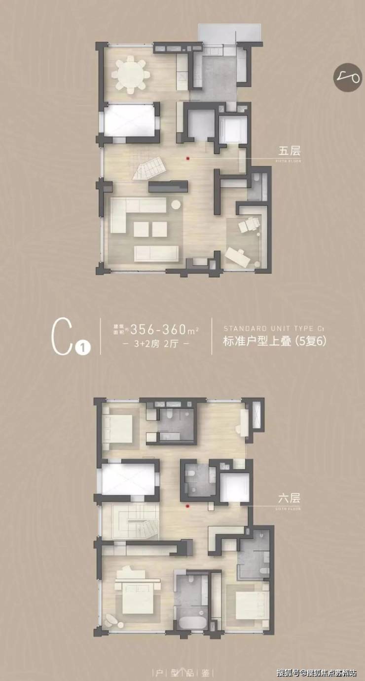 居住单元均为双层叠加,通过空间分层将公私区自然相隔,将同而又和的家庭生活,分合有序的居住礼序展现其中,并配备私人电梯和专属停车位,营造私密尊崇的居住体验。