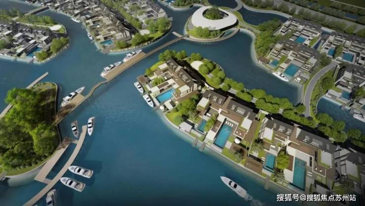 每一排别墅前都有一条渠道,引入水系,可!以!停!游!艇!是真正的游艇码头滨水别墅!