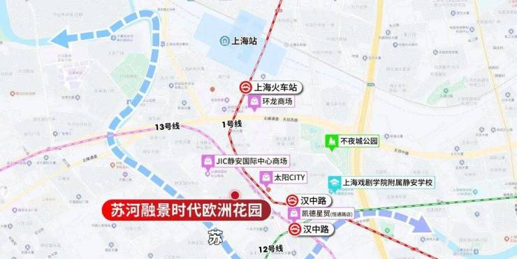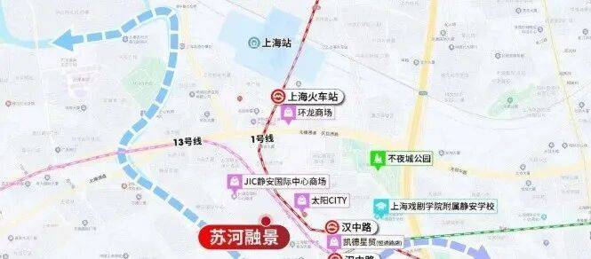 苏河融景,步行约188米1/12/13号线汉中路站!进站后2站人民广场,2站南京西路、2站北外滩!同时项目近邻东西大动脉北横通道、南北大动脉南北高架以及内环高架,自驾迅捷通勤全城!