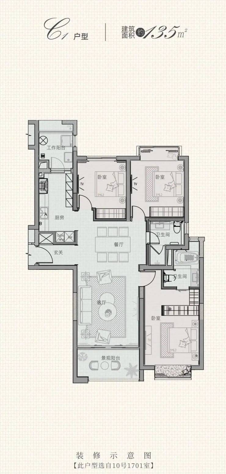 建面约135㎡灵动3房户型