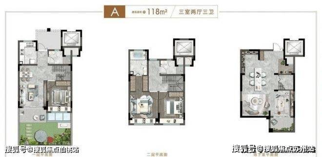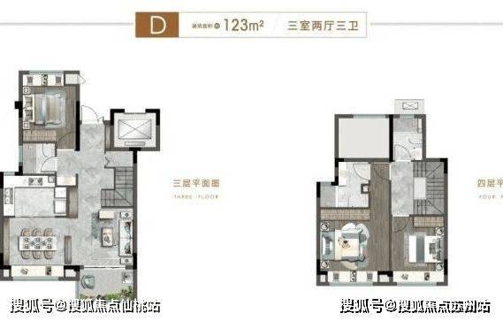 约123平上叠3房户型,共上下两层,全明设计,格局开阔,宽景阳台,上承天空,下承生活。