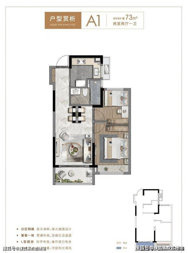 约73平两房户型,南北通透设计,南向瞰境阳台、主卧搭配飘窗,总价控制在200万不到,超低门槛,从容上车;