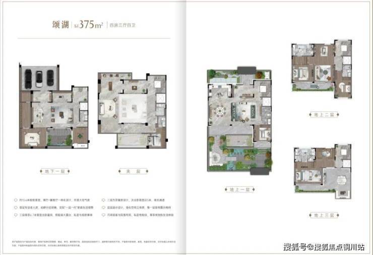 以建面约375㎡户型为例,地上三层加地下双层空间,通过完美功能分区,既保障多代同堂的舒适性,又为家族社交、收藏、娱乐等个性化需求提供充足可能.