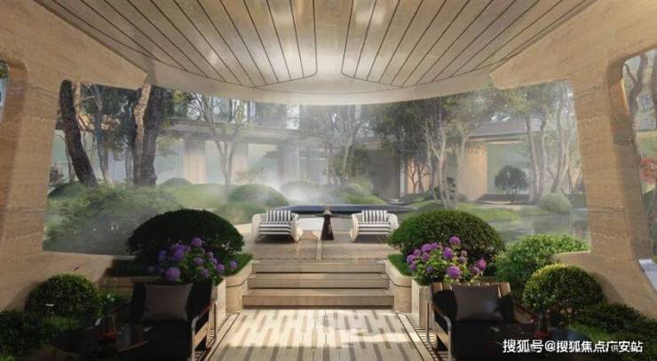 澐启滨江还打造了延展超百米的庄园景观.设计灵感源自杰弗里·巴瓦的庄园哲学,建筑单体与绿化植被交错融合,形成一系列嵌入自然的观景单元.