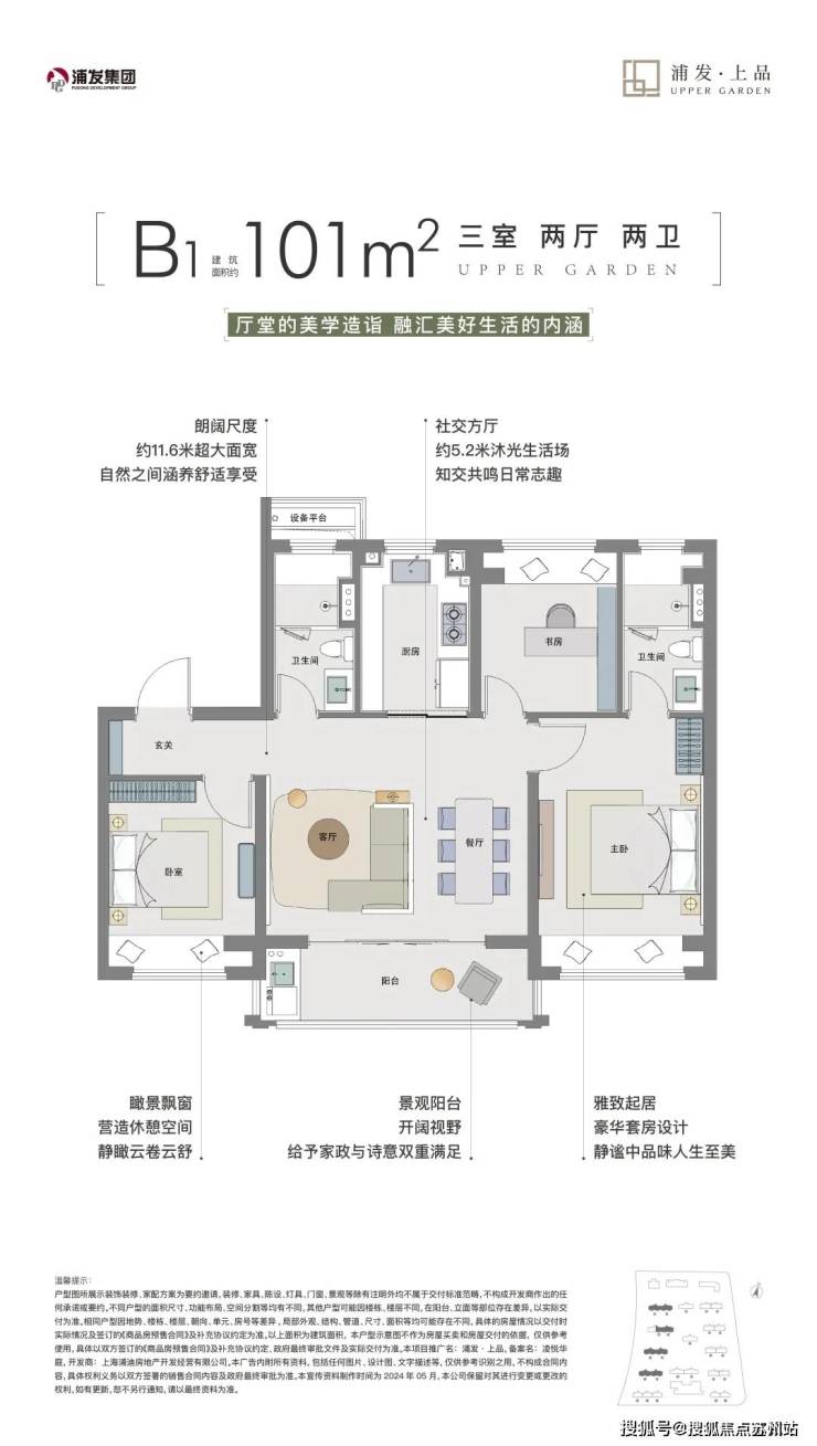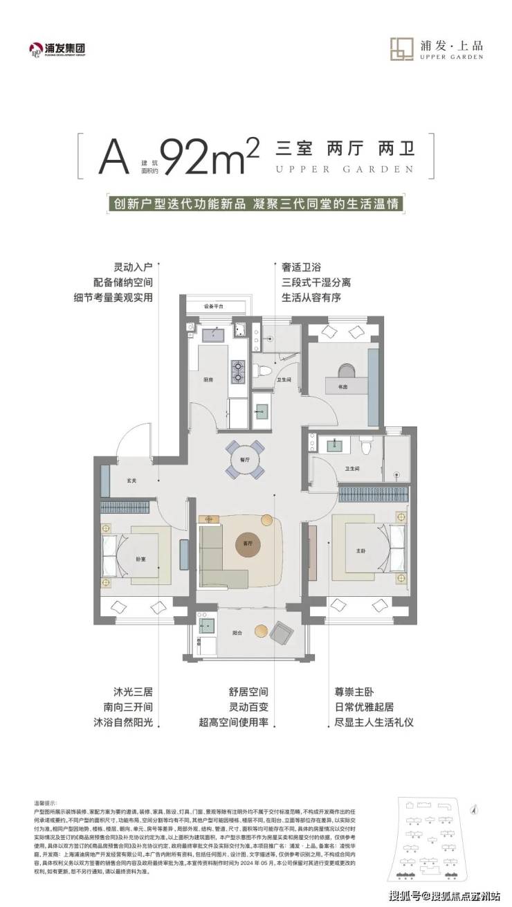浦发上品目前在售建面约92-101-129㎡3-4房,4种全功能户型。