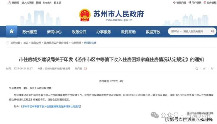 市住房城乡建设局关于印发《苏州市区中等偏下收入住房困难家庭户籍人口情况认定规定》的通知https://www.suzhou.gov.cn/szsrmzf/bzxzf/202509/4f15a274aa434a7198f8d99b51cf910f.shtml