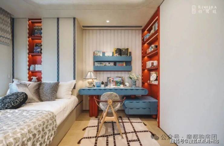 以建面约179㎡的边套为例,并未将北房间局限为常规卧室,而是灵活打造为HIFI音乐室与收藏阅读室,既可作为业主的灵感工作室,也能成为孩子的兴趣天地;