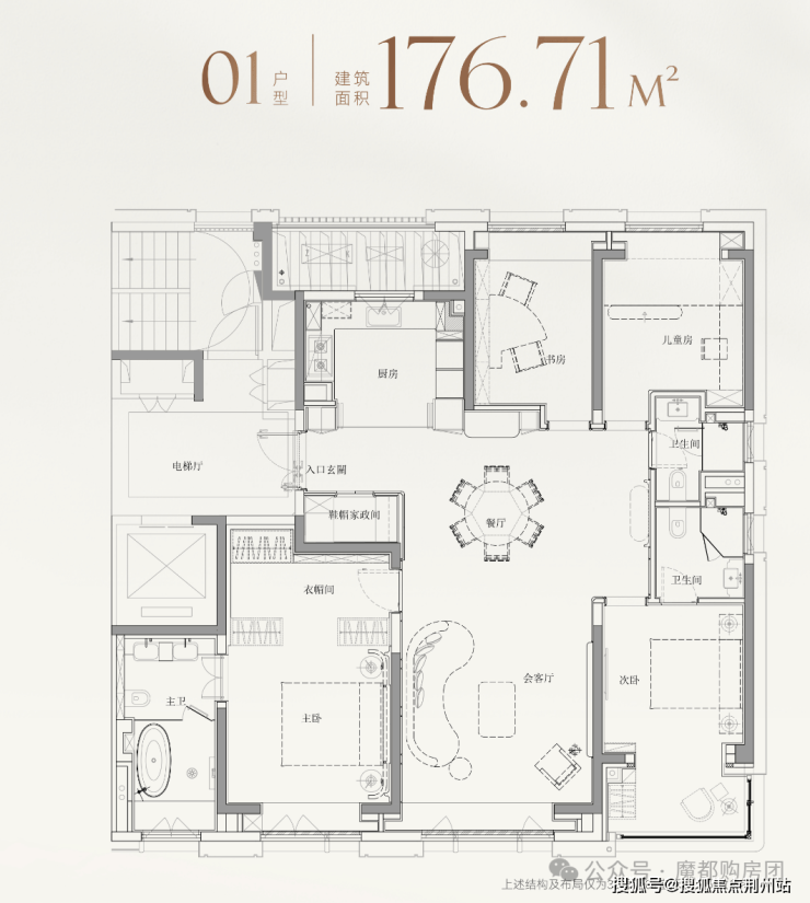 而建面约177㎡01室,则针对性地打造为4房格局,精准契合二胎家庭或三代同堂需求.