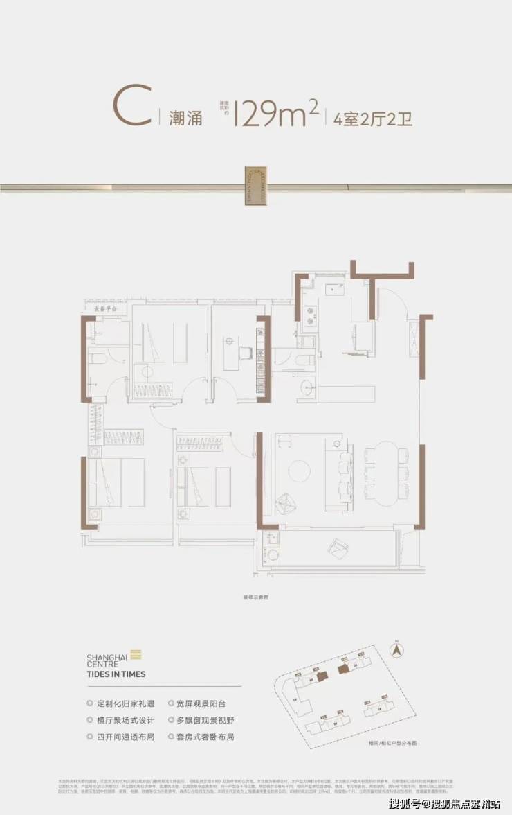 建面约129㎡真4房产品,并且四开间朝南的设计,这个户型的南向面宽和尺度感堪比别墅。