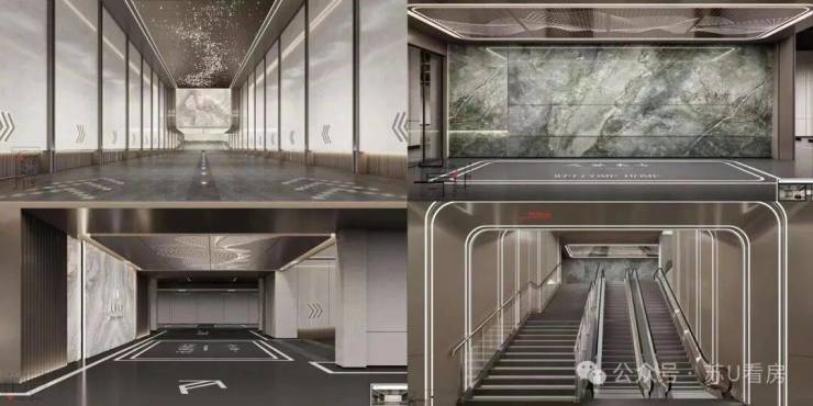 星空顶地库非凡礼遇,星空玄关迎宾&星空入户前厅、入库墙面&顶面全铝板、坡道部分石材铺装,厘定豪宅尊崇归制,车库直通斜塘站,风雨无惧,地库自带自动扶梯,前所未见,从容出入。