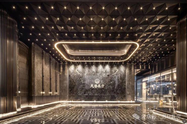 入户大堂则臻选名贵石材天空翡翠蓝打造,呈现东方意韵,彰显入户仪式感。