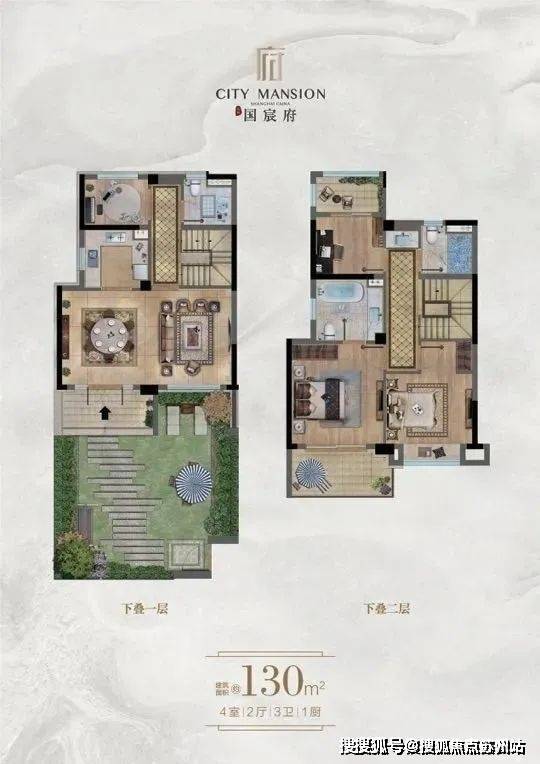 下叠:1-2层130平,有花园和地下室