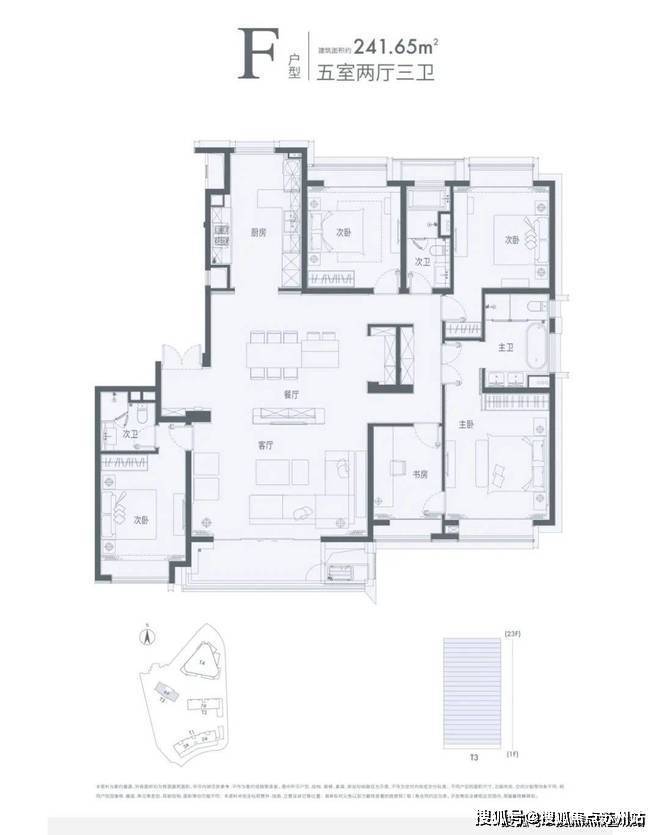 建面约241㎡5房2厅3卫户型,原先保留的房源现在对外出售!五年前的价格!单价仅11万!一步到位改善级豪华住宅,四代同堂无压力,2500-2700万级精品巨献!