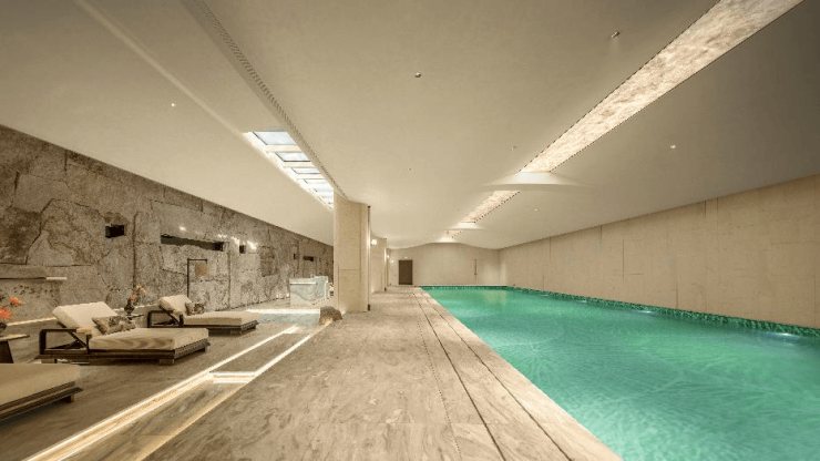 全域智能与便捷体验。智能门禁支持刷脸通行,公区灯光自动调节;户内全屋灯光智能控制等。会所配置智能设备,如恒温泳池水质监测。
