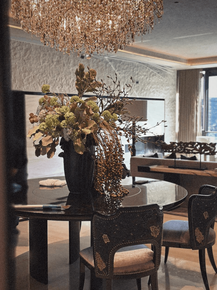 项目精装设计注重材质选择与工艺细节:采用天然石材、木饰面及实木地板等材质,通过不同材质的搭配体现设计精度;工艺上运用无缝与隐形式设计,增强空间的纵向延伸感;空间布局优化传统客厅功能,打造开放式社交空间,兼顾圈层交流与家庭使用需求。