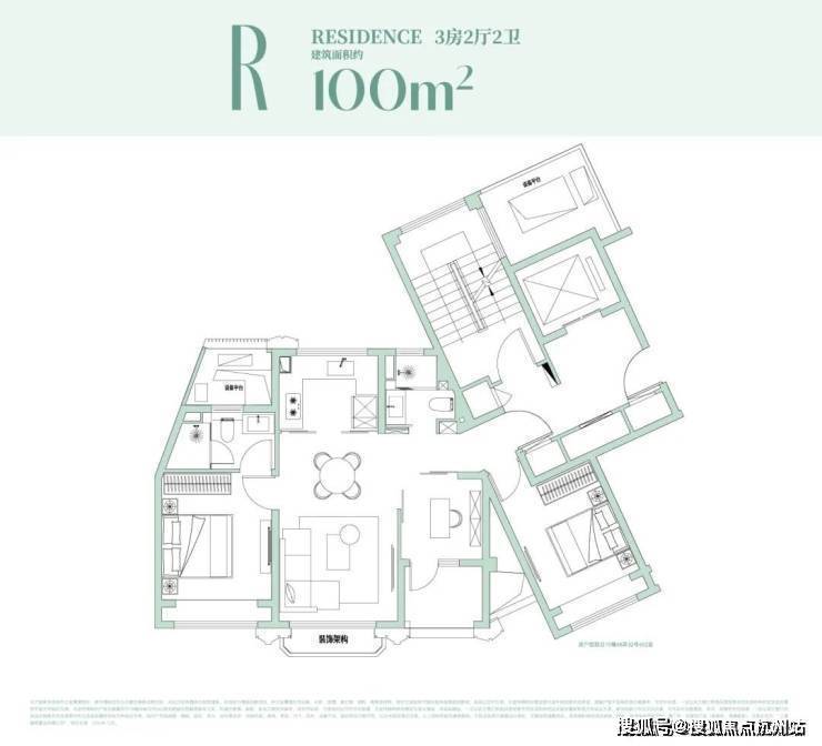 约99㎡户型设计:经典飞机户型格局!独立观景阳台!