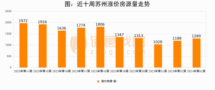 从调价房源来看,第52周苏州涨价房源1289套,较上周上涨8.5%。与此同时,52周涨价房源占比回落0.1个百分点,业主信心小幅波动,购房者可则需入市。