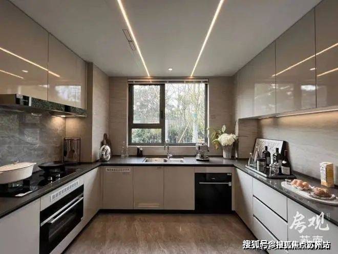 润鸿四季售楼处电话:400-8228-664【欢迎预约】厨房除了配备西门子的抽油烟机、灶具,还配备了蒸烤一体机、洗碗机五件套,屋顶还安装了凉霸,节省了后期的装修成本。