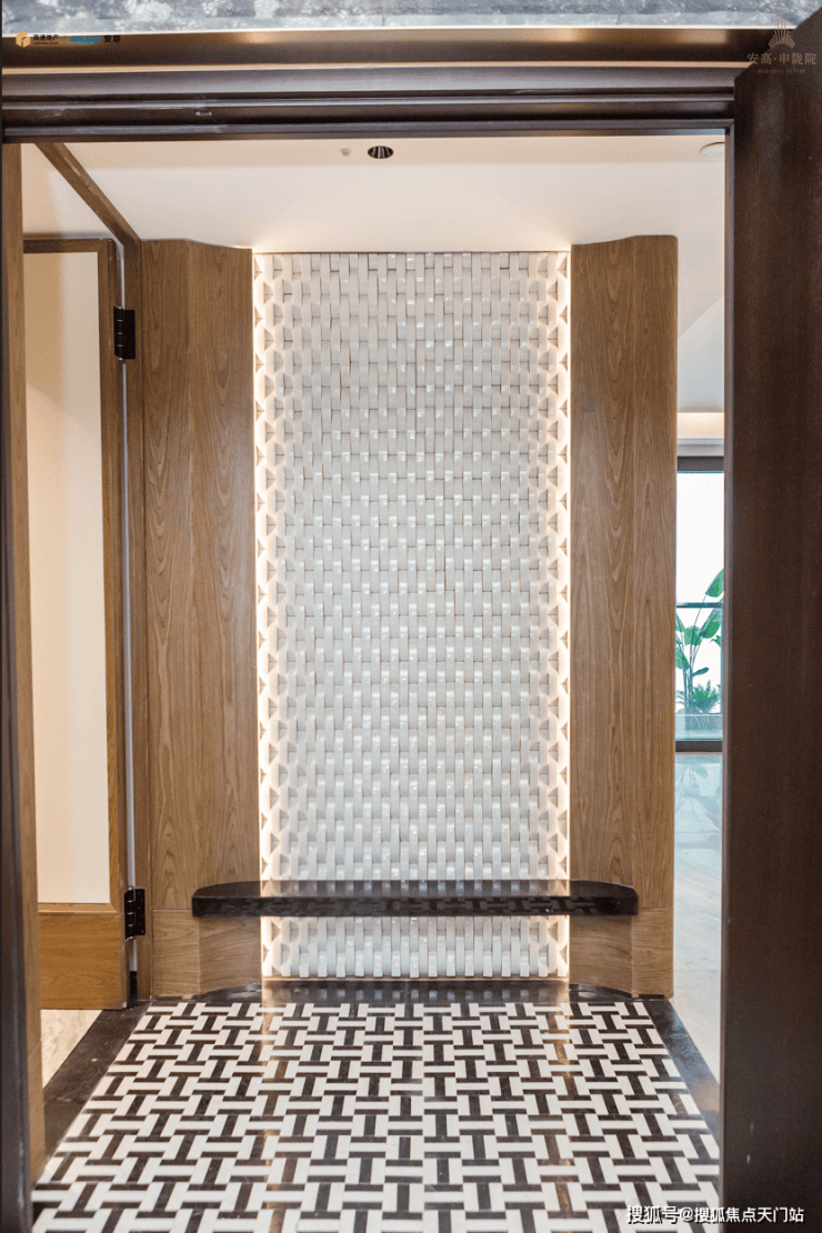 107㎡是一梯两户,甚至就连不起眼的电梯间区域,他们都做到了设计感十足的精装交付,门牌号是金属面板搭配编织纹.