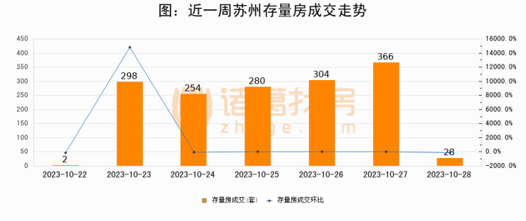 从存量房来看,2023年10月28日苏州存量房单日成交28套,比昨日减少338套,环比下降92.3%。从近一周存量房成交来看,苏州存量房日均成交套数为218套,10月28日单日成交28套,低于近一周平均水平87.2%。