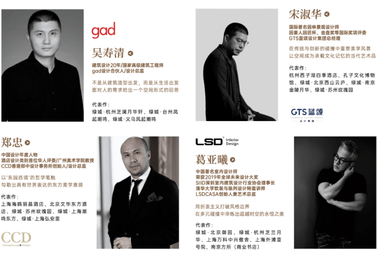 项目邀请全球大师团队联袂执笔:gad设计合伙人吴寿清负责建筑整体规划、GTS蓝颂总经理宋淑华主持景观设计、CCD郑忠担纲室内精装、LSD葛亚曦完成软装与美学把控。